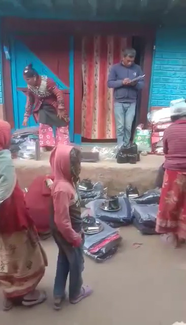 Due to excess rainfall, landslide occurred in the Dailekh district, Dhiren Badi's family and other 15 houses in the Badi community were flooded and displaced from their houses forcing them to live in temporary tents. 25 families consisting of 145 people were affected from the landslide making them homeless and vulnerable to the cold. VG Foundation found out about the condition of the Badi Community after flood and landslide via Naya Patrika and donated necessary items to the community for their sustenance.