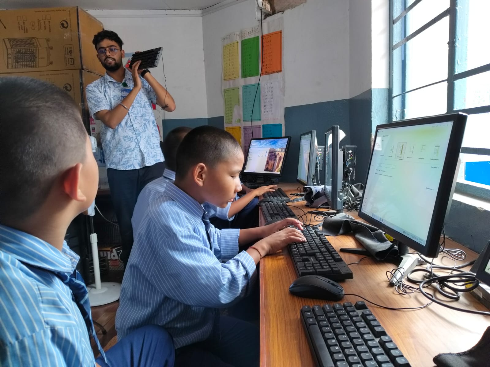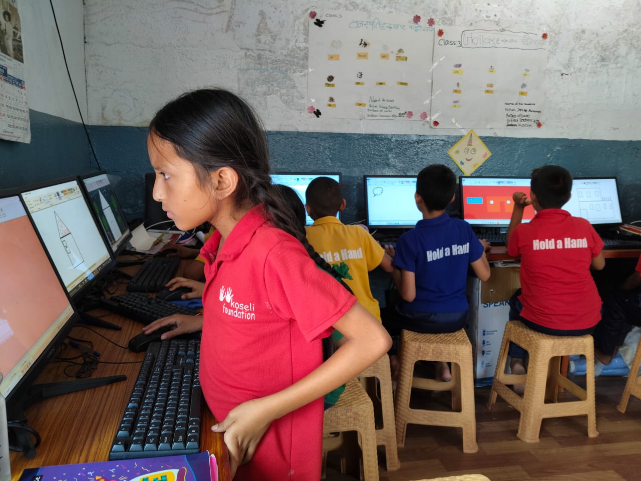 Continuing our efforts on Bridging the Digital Divide project and also promoting early digital education, VG Foundation collaborated with the Leo Club of Kathmandu Budigandaki, and organized a three-day computer education session at Koseli School in Shantinagar for students from grades one to five. The program combined both theoretical instruction and practical learning, helping students gain a well-rounded understanding of computer basics. They learned about the essential components of a computer, their functions, and how each part works together. This introduction laid a strong foundation for the hands-on lessons that followed, allowing the children to confidently interact with computers and discover their creative and academic potential.
